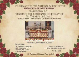 CATHOLIC GATHERINGS FIND AN EVENT SUBMIT AN EVENT OUR EVENTS Grief Share Support Group St Francis de SalesSeptember 9, 2025Jubilee Pilgrimage to Italy 2025November 4, 2025Free Open Dress Rehearsal of “La Boheme” with Orchestra AccompanimentNovember 10, 2025Brooklyn & Queens Catholic Youth Day 2025November 15, 2025Heritage Committee of St. Gregory the Great presents An Evening of Sacred SongsNovember 16, 2025Pilgrimage for the Veneration of the Reliquary of St Therese of LisieuxNovember 20, 2025Pilgrimage to the National Shrine of the Immaculate ConceptionNovember 20, 2025Little Sisters of the Poor Annual Turkey/Ham Drop Bake SaleNovember 22, 2025St. Therese of Lisieux 2025 Black Catholic History Month CelebrationNovember 22, 2025Our Lady of Grace Christmas FairNovember 23, 2025