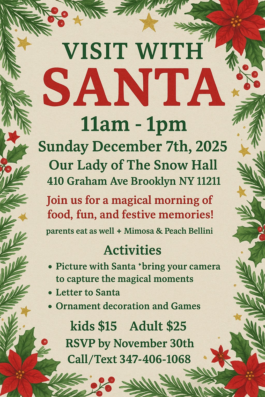Please RSVP by November 30th to reserve your ticket! Please call/text Maria at 347.406.1068